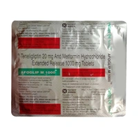 Afoglip M 1000 Tablet ER is a combination of two medicines that control high blood sugar levels in people with type 2 diabetes mellitus. This helps prevent serious complications of diabetes such as kidney damage and blindness and may also reduce your chances of having a heart attack or stroke.