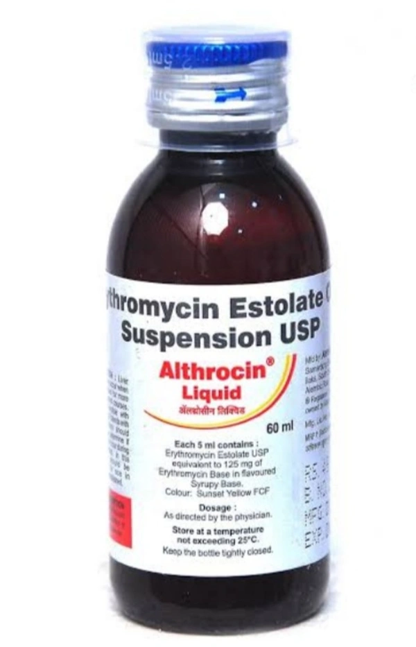 Althrocin Liquid is an antibiotic medicine that helps treat bacterial infections of the eye, ear, nose, throat, lungs, teeth, skin, and urinary tract. Also given as an alternative therapy to penicillin allergy, Althrocin Liquid may help treat certain specific infections such as pertussis (whooping cough) and diphtheria.