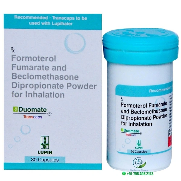 Duomate Transcaps is used in the treatment of asthma (wheezing and shortness of breath) and chronic obstructive pulmonary disorder (a lung disorder in which the flow of air to the lungs is blocked). It relaxes the muscles of the air passages and making it easier to breathe.