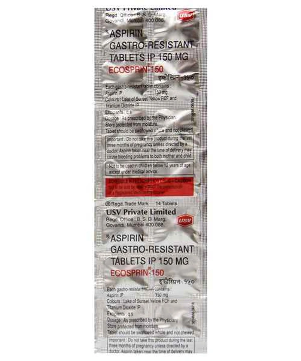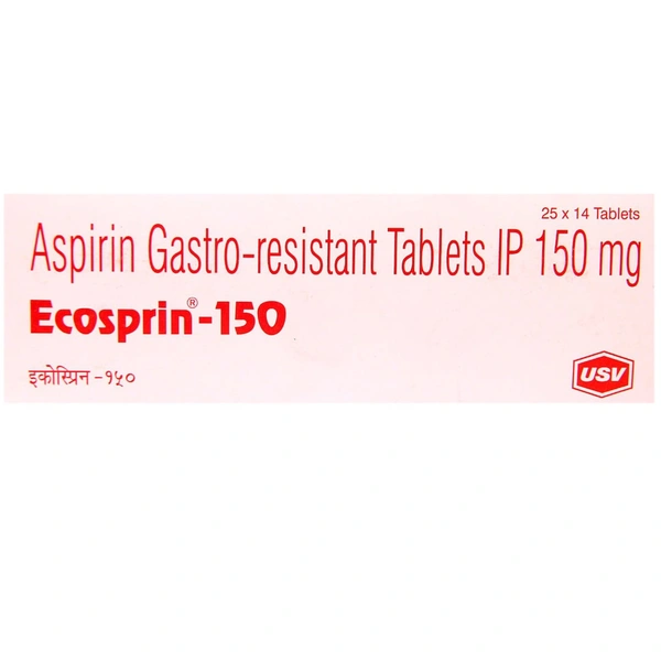 Ecosprin 150 Tablet is an antiplatelet medicine used to treat and prevent heart attacks, strokes, and heart-related chest pain (angina). It helps to prevent the formation of blood clots in your blood vessels. It is a very widely used medicine for heart protection.