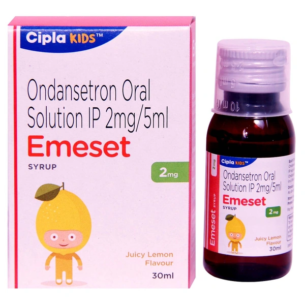Emeset Syrup Juicy Lemon is a medicine given to children to help treat nausea and vomiting. It is mainly given to treat nausea and vomiting associated with surgery, chemotherapy, radiotherapy, and stomach/intestinal infection. It also helps treat vomiting that is caused as a side effect of medicines like painkillers.