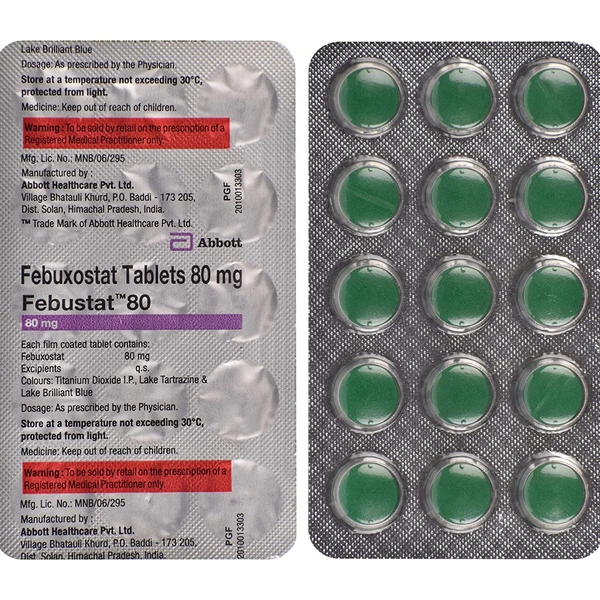 Febustat 80 Tablet is a medicine used to treat and prevent gout. Gout happens when there is too much uric acid in your body and it forms into crystals that can appear around your joints leading to painful and swollen joints. This medicine helps to keep uric acid levels low.