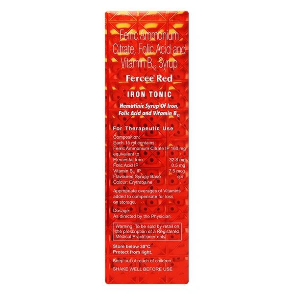 Fercee Red syrup is Iron preparation composed of Ferric Ammonium Citrate,Folic acid and Vitamin B12