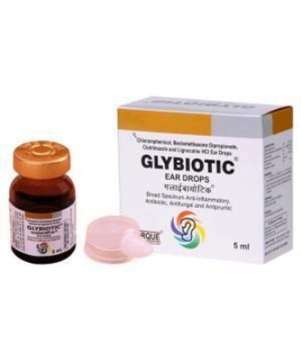 Glybiotic Ear Drop is a medicine used to treat ear infections. It works by killing and inhibiting the growth of microorganisms in the ear. This relieves discomfort, itching, irritation, and pain in the ear.