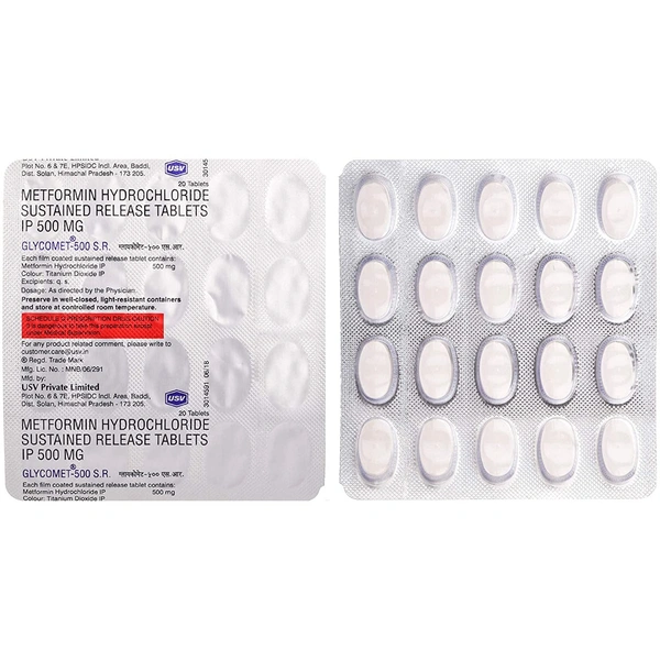 Glycomet 500 SR Tablet is a medicine used to treat type 2 diabetes mellitus. It helps control blood sugar levels and thus prevent serious complications of diabetes. It is also used to treat a menstruation-related disorder known as Polycystic ovary syndrome (PCOS) in women.