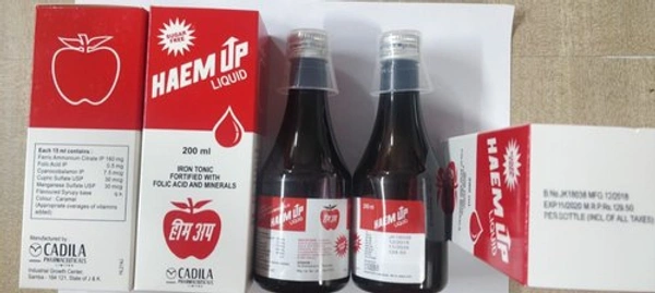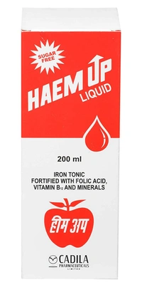 Haem UP Liquid Sugar-Free is a haematinic oral liquid designed to provide essential nutrients to the body to support the production of red blood cells and help manage iron deficiency anaemia. The liquid contains a combination of iron, folic acid, cyanocobalamin, manganese, and copper sulfate. These essential nutrients help support the body's mechanisms for producing and maintaining healthy red blood cells.