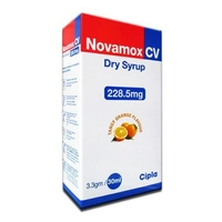 Novamox CV 228.5mg Dry Syrup is an antibiotic medicine that helps treat bacterial infections of the ear, nose, throat, chest, lungs, teeth, skin, and urinary tract. It is capable of killing bacteria that have become resistant to other therapies and thus also helps treat tuberculosis that is resistant to other treatments.
