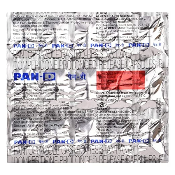 Pan-D Capsule PR is a prescription medicine used to treat gastroesophageal reflux disease (Acid reflux) and peptic ulcer disease by relieving the symptoms of acidity such as indigestion, heartburn, stomach pain, or irritation.