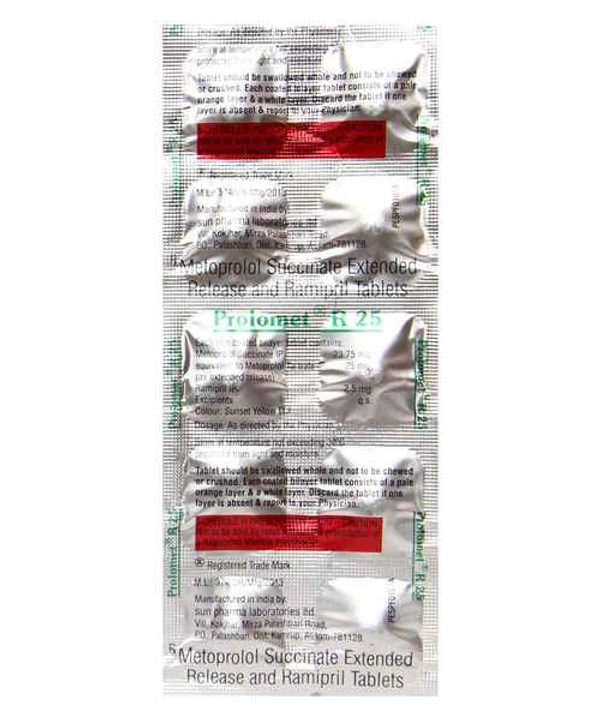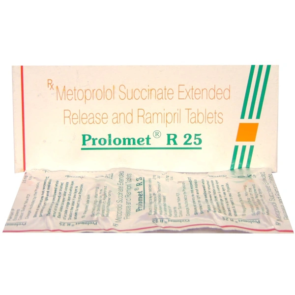 Prolomet R 25 Tablet ER is a medicine used for treating high blood pressure. By lowering the blood pressure, it helps in preventing future heart attack and stroke. Early treatment with this medicine also improves chances of survival in patients of heart attack.
