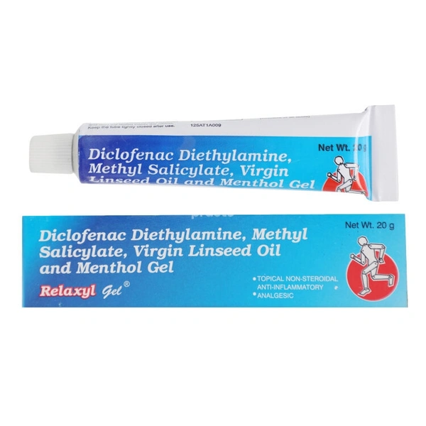 Relaxyl gel (applied to the skin) is used to relieve pain associated with recent muscle or joint injuries such as sprains, strains, or sports injuries. It also relieves pain from rheumatoid arthritis, osteoarthritis etc.