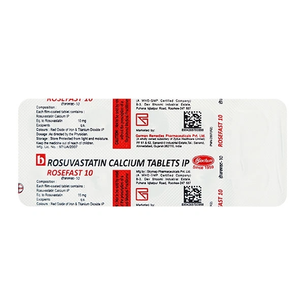 Rosefast 10 Tablet is a widely prescribed medicine and is regarded as safe for long-term use. It can be taken with a meal or on an empty stomach. You can take it at any time of the day but try to take it at the same time each day. Most people with high cholesterol do not feel ill, but stopping your medicine may increase your cholesterol levels, making your condition worse and increasing your risk of heart disease and stroke.