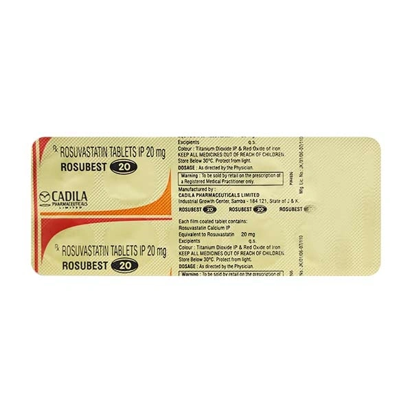 Rosubest 20 Tablet is a widely prescribed medicine and is regarded as safe for long-term use. It can be taken with a meal or on an empty stomach. You can take it at any time of the day but try to take it at the same time each day. Most people with high cholesterol do not feel ill, but stopping your medicine may increase your cholesterol levels, making your condition worse and increasing your risk of heart disease and stroke.