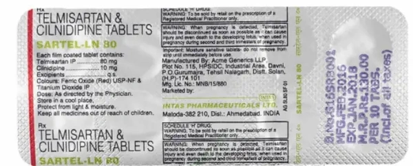 Sartel-LN 80 Tablet may be taken on an empty stomach or along with food. However, it is better to take it regularly at a fixed time each day, as prescribed by your doctor. The dose will depend on your condition and how you respond to the medicine. It’s important to keep taking this medicine even if you feel well. By lowering your blood pressure, it is reducing your risk of heart attack or stroke so do not stop taking it unless your doctor tells you to. You can help this medication work better by making a few changes to your lifestyle such as keeping active, stopping smoking, and eating a low salt and low-fat diet.
