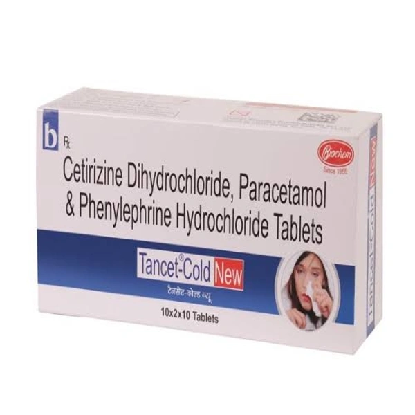 Tancet Cold Tablet is used in the treatment of common cold symptoms like runny nose, stuffy nose, sneezing, watery eyes, and congestion or stuffiness. It is also used to relieve pain and fever.
