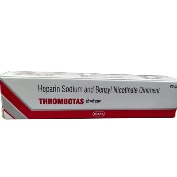 Thrombotas Ointment is a combination of two medicines used to treat superficial thrombophlebitis (inflammation or swelling of a vein due to a blood clot). It helps to relieve pain and inflammation by speeding up the healing process.