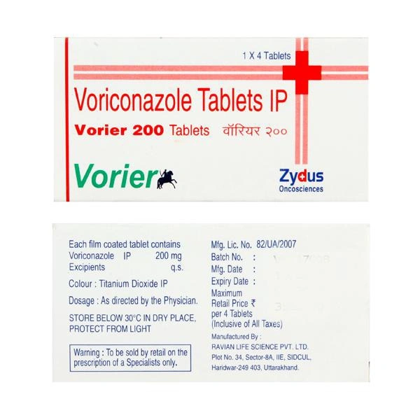Vorier 200mg Tablet belongs to a group of medicines called antifungals. It works by stopping the growth of fungus and is used to treat a wide range of fungal infections. It kills fungi by destroying the fungal cell membrane.