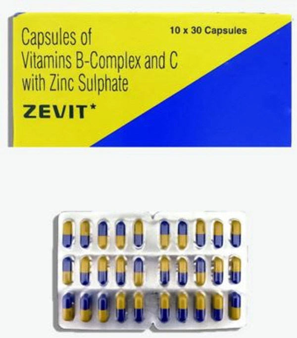 Zevit capsule is a rich formulation of Zinc, Vitamin B complex and Vitamin C.