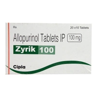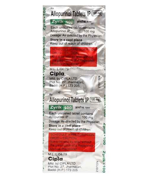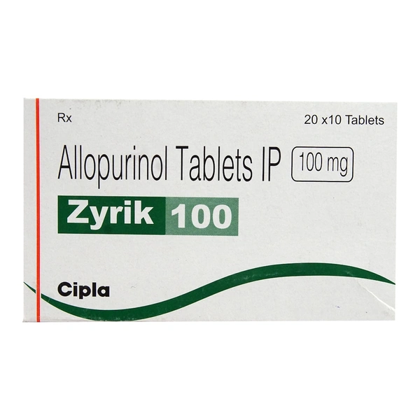 Zyrik 100 Tablet is a medicine used to treat and prevent gout. Gout happens when there is too much uric acid in your body and it forms into crystals that can appear around your joints and kidneys and cause pain. This medicine helps to keep uric acid levels low.